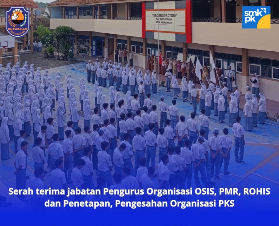upacara SERTIJAB ini dillaksanakan di Lapangan SMK Baitussalam Pekalongan dan di ikuti oleh seluruh peserta didik, guru dan karyawan SMK Baitussalam Pekalongan